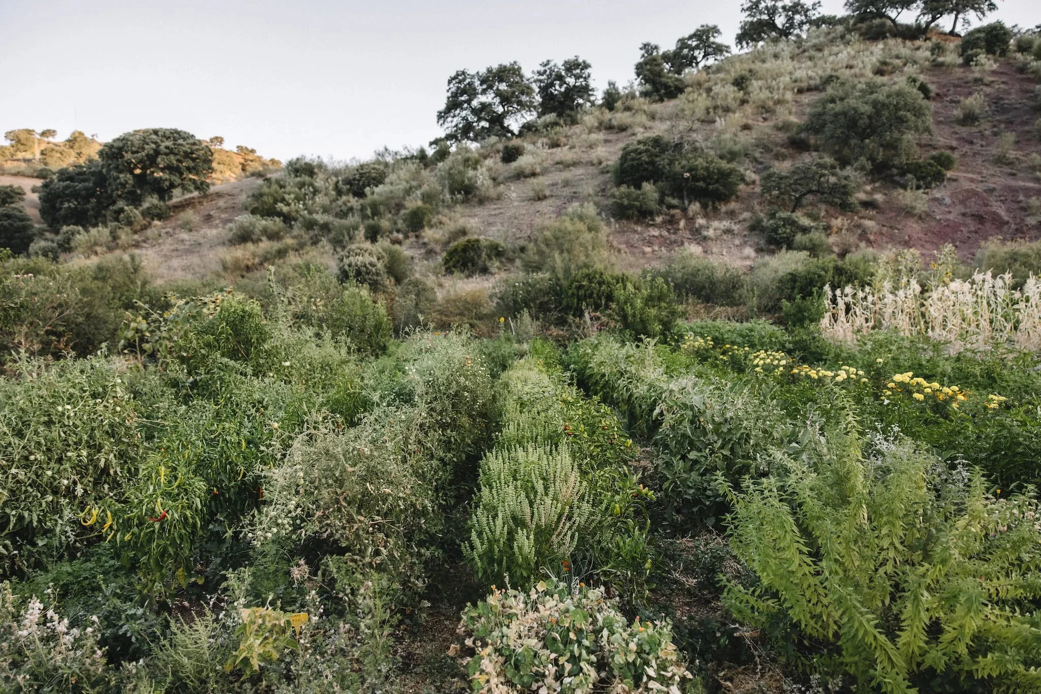 It means that the vast majority of what appears on your plate — the vegetables, the meat, the eggs, the olive oil, the honey, the wine — was grown, raised, or produced on our estate in the Serranía de Ronda. It means there is no fixed menu, no standard supplier to call when something runs short, and no separation between what happens in the field and what happens in the kitchen. It means the land decides what you eat.