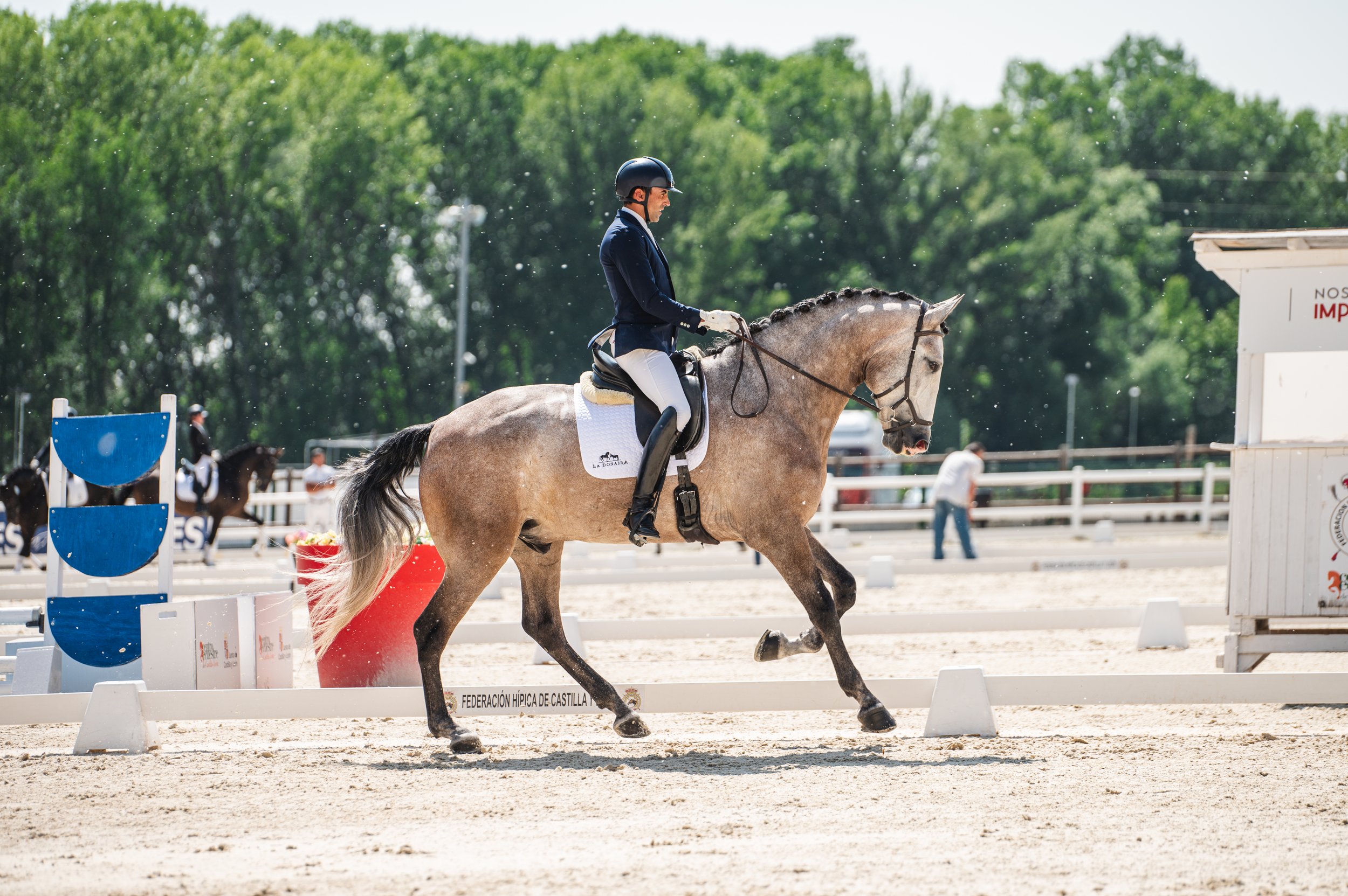 We focus on Dressage, carefully selecting the sport horses that make up our team. We prioritize exceptional bloodlines, descended from proven champions in the discipline. Our Lusitano horses, meticulously bred, combine strength, agility, and elegance, making them outstanding athletes in the world of dressage. Each horse undergoes a rigorous selection and training process, ensuring that only the finest individuals become part of our competition team.